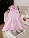 Vestido polo de manga corta con cuello y estampado de corazones para niñas, de verano