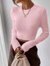 DAZY Camiseta de punto acanalado con botón de cuarto, ropa de otoño de manga larga para mujer